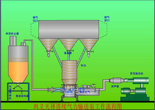 二:料封泵的優(yōu)點 1、設備投資小,用一臺料封泵可替代二臺倉泵,降低了設備投資。 2、料封泵的用氣壓力為0.04Mpa-0.1Mpa,降低了供氣壓力,節(jié)約了耗氣量,同時降低了電機功率。 3、降低了維修費用。該系統(tǒng)一次安裝調(diào)試投運后,基本不用操作,幾乎沒有維護量,檢修工只須定期檢查即可。 4、低壓力輸送,設備密封性較好,運行可靠,無堵管現(xiàn)象,環(huán)境面貌*完善 該設備自投放市場以來經(jīng)多家使用證明該泵與倉式泵、斗式提升機等設備相比,具有體積小,風壓低(0.2--1大氣壓,一般不需空壓機,只配羅茨 風機即可)、易布置、無揚塵、符合環(huán)保要求等一系列優(yōu)點。廣泛用于 電力、建材、化工等領域,是在當量距離680m,高度50m內(nèi)用來提升輸送水泥、生料、粉煤灰等粉狀物料的理想設備,該料封泵主要特點是使用壽命長、運轉(zhuǎn)可靠,幾乎沒有維修量和磨損件。 三:料封泵工作原理料封泵是利用氣流射流作用,使空氣帶動灰粒把灰送到灰?guī)?,料封泵主要有四部分組成分別為噴嘴、圓柱形泵體、噴嘴調(diào)節(jié)裝置、底部汽化裝置,料封泵工作時的能量來自二部分:一部分是風機的動能,另一部分是料柱的勢能。料柱高、勢能大、壓力大、輸送量相應就大,反之則小。